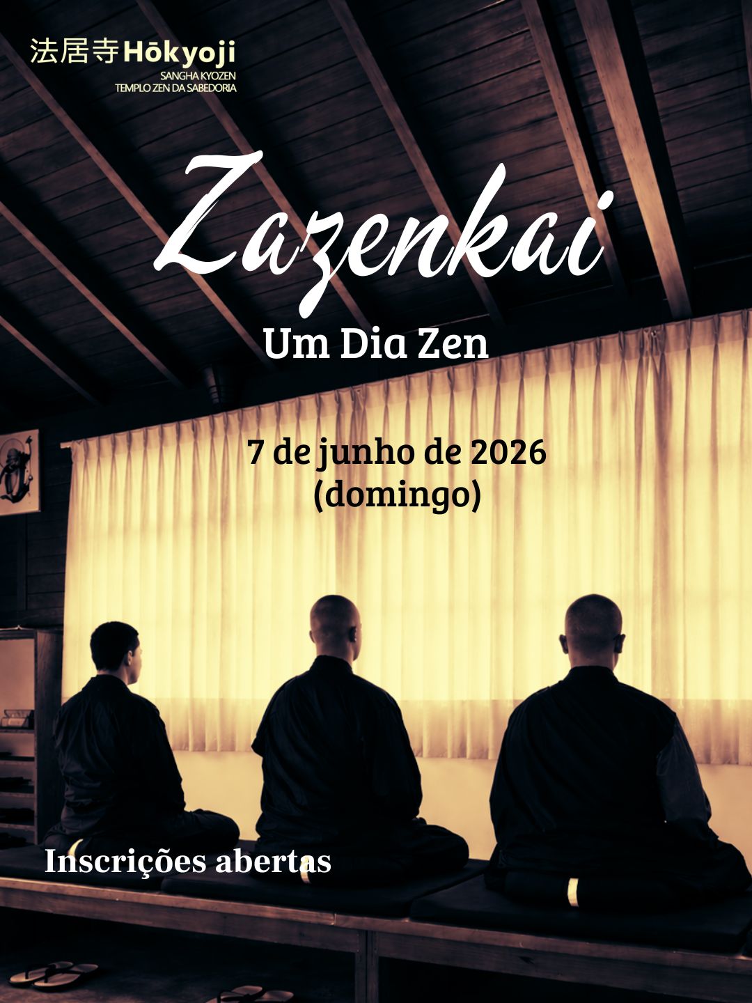 No dia 7 de junho (domingo), de 8h às 17:30h, no Hōkyoji, realizaremos o Zazenkai – Um Dia Zen. Durante este dia, você poderá vivenciar um dia na rotina de um retiro zen. Além de fazer zazen (meditação zen) e outras atividades de atenção plena, todos e todas terão a oportunidade de participar de algum treinamento ligado à prática.